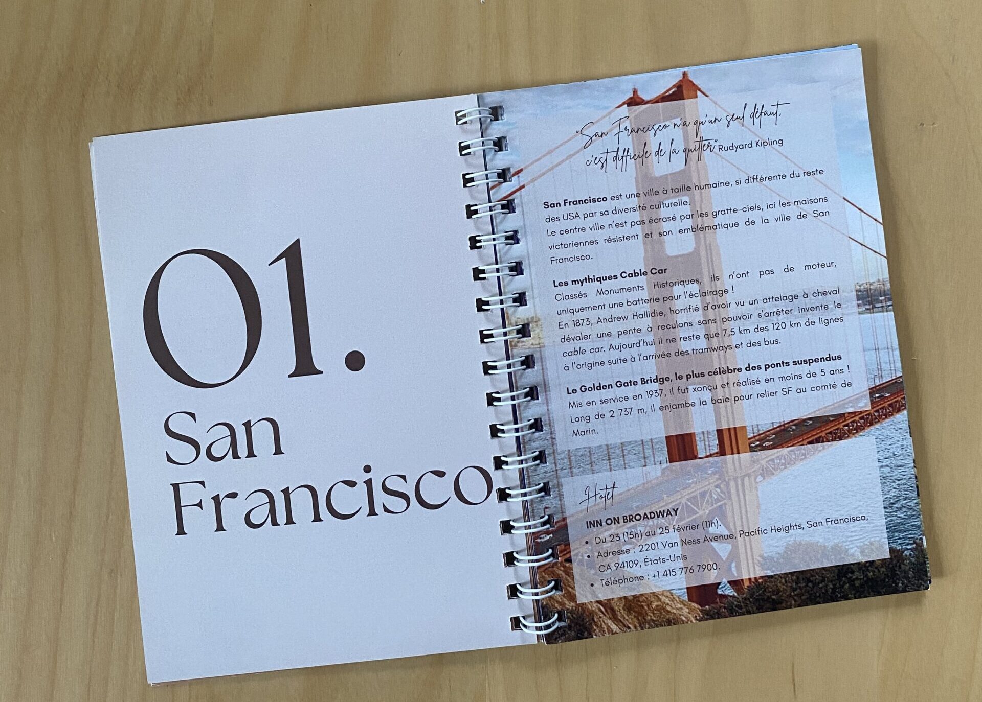 Votre RoadBook personnalisé vous accompagnera pendant tout votre voyage à l’autre bout de l’Atlantique !